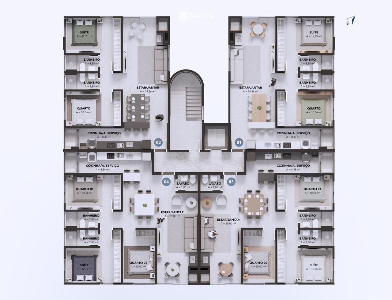 Destaques dos apartamentos: