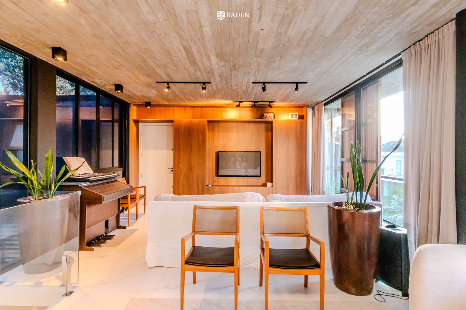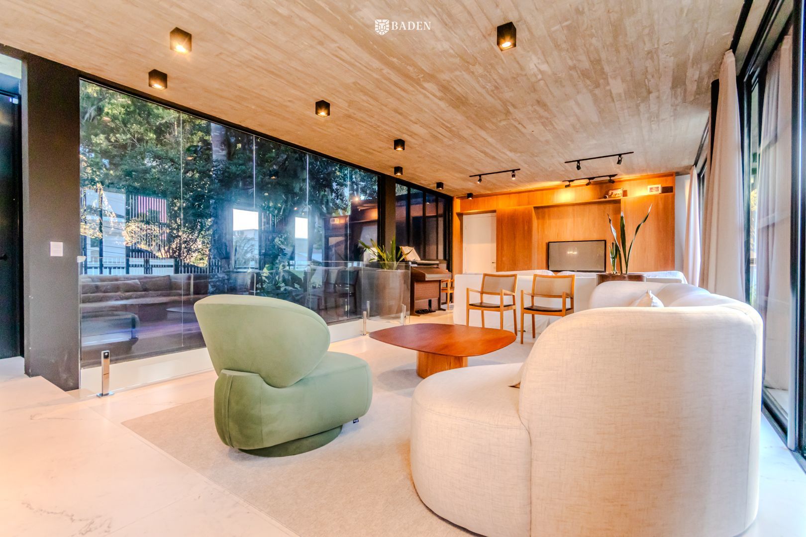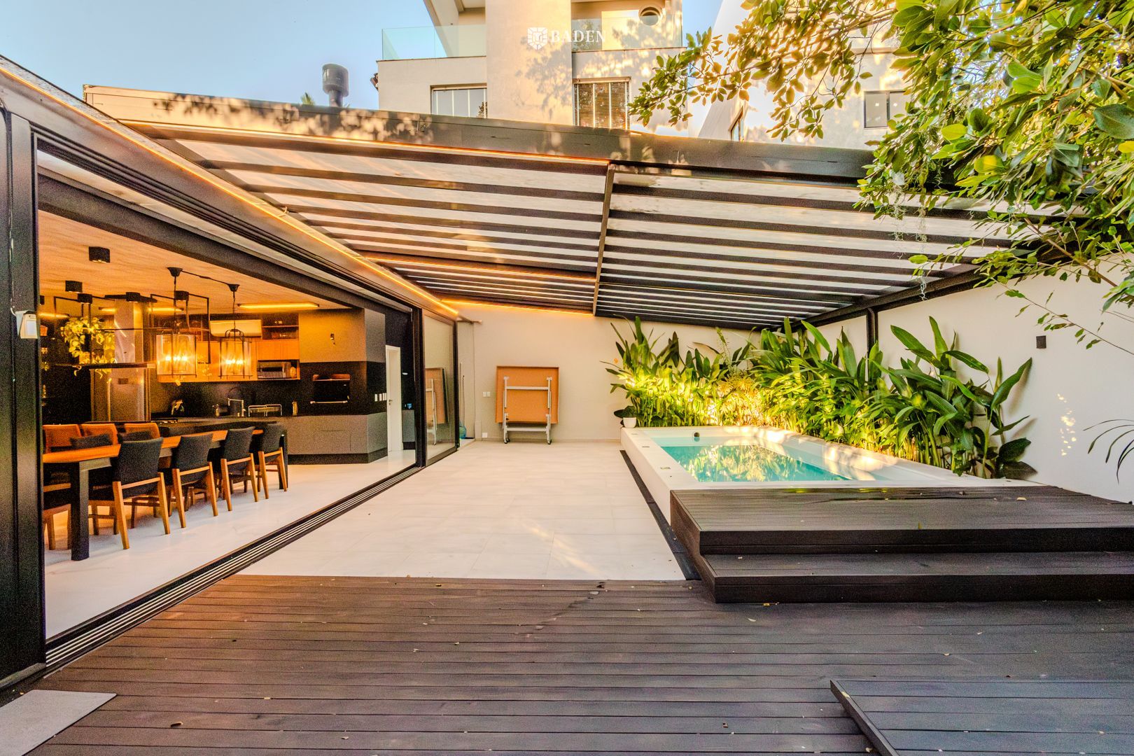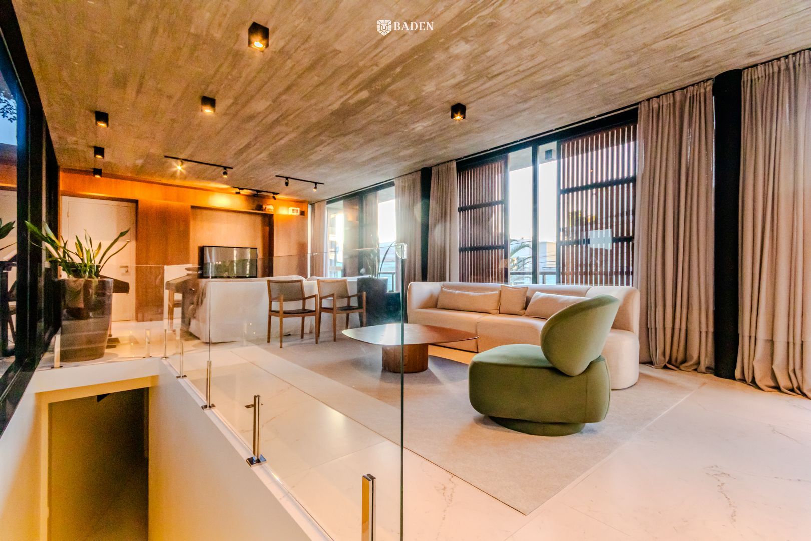 * **Ambientes amplos e integrados**, incluindo living, sala de estar, jantar e escritório