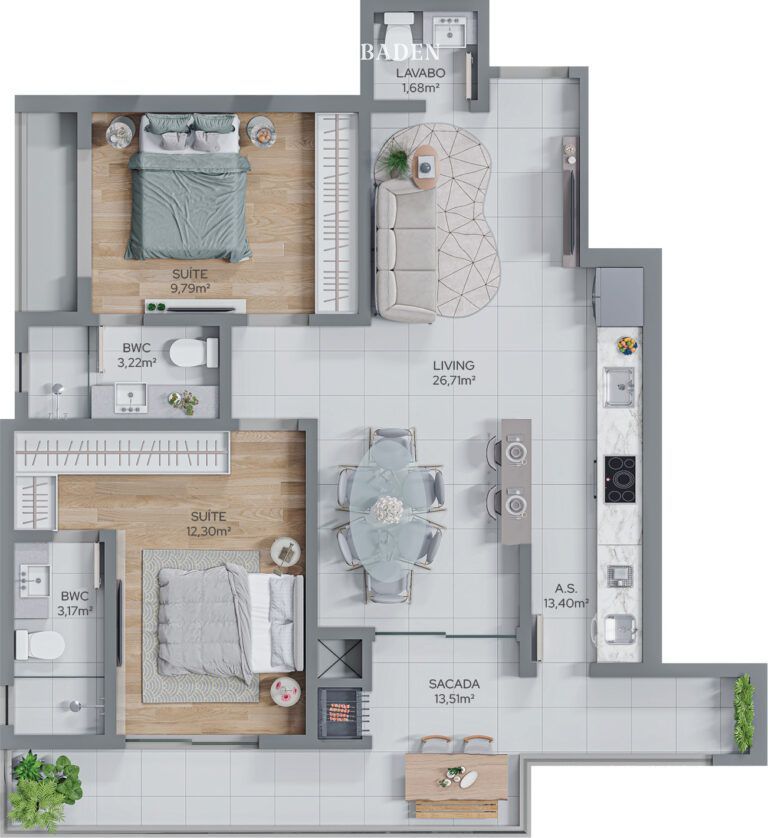 Um empreendimento imponente com 20 andares, apenas 4 unidades por andar, de 2 suítes ou 1 Suíte + 2 dormitórios, com amplas varandas com churrasqueira e acabamento de alto padrão.