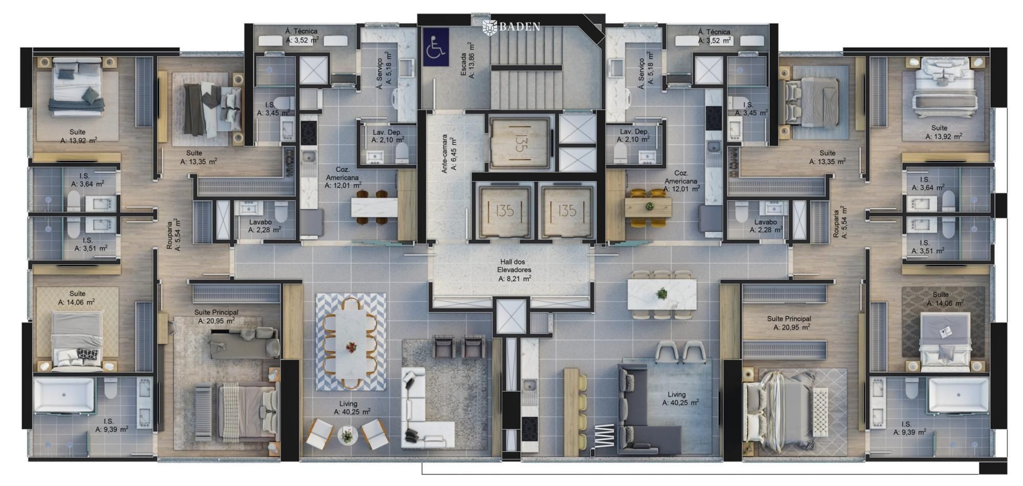 Com 40 pavimentos, 62 apartamentos e 135 metros de altura, o 135 Jardins possui uma arquitetura moderna e arrojada assinada por Rodrigo Kirck. Mais do que um empreendimento, uma obra de arte.