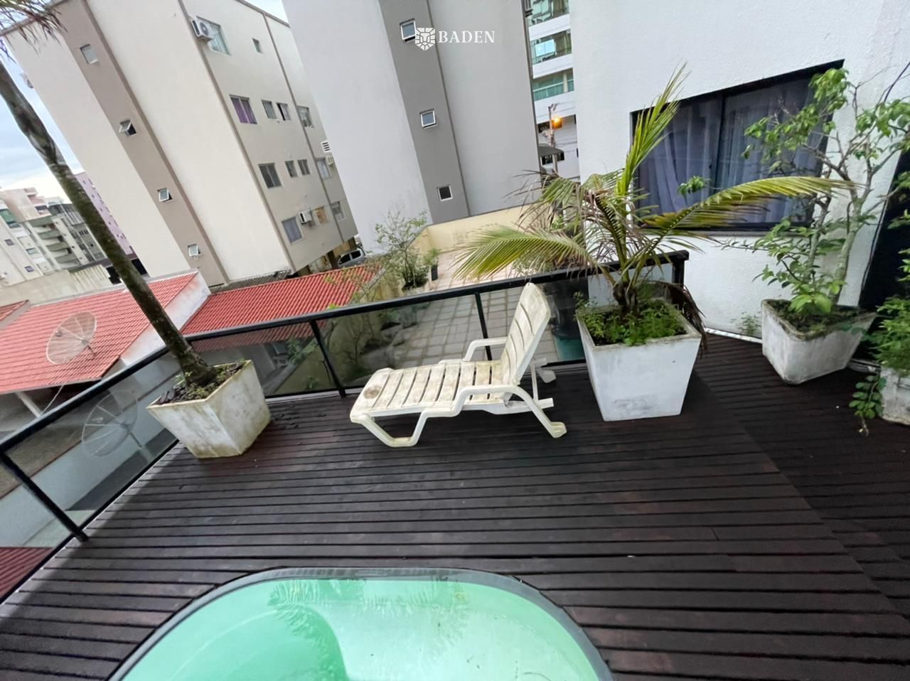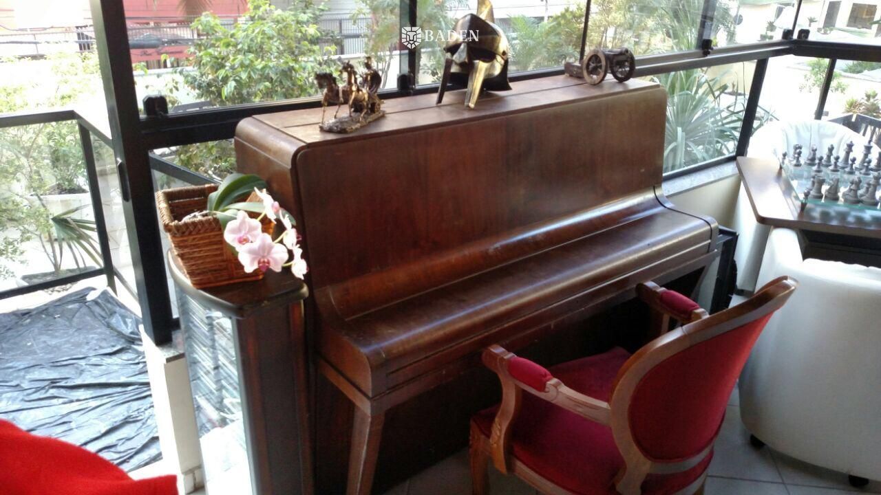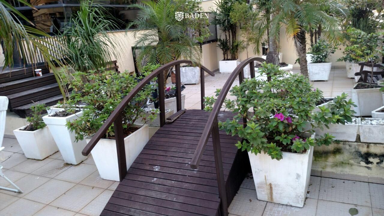 O APARTAMENTO :”Vende-se linda propriedade, chamam-no de apartamento diferenciado, prefiro – cobertura de primeiro andar.Nele cantam os pássaros, ao amanhecer, pulando entre os galhos da plantas cultivadas em mais de cinquenta vasos. A piscina de água cristalina nos chama a refrescar os corpos do amanhecer ao entardecer. Nas noites frias basta ligar o aquecedor.A propriedade, banhada pelo sol durante todo dia, oferece ainda um espaço ímpar, onde pode-se reunir cinco, dez, vinte, trinta ou mais amigos para desfrutar de um churrasco nos quase 250 m², somente de terraço.”- Posição solar: Sul/Norte;- 03 Dormitórios sendo 01 Suíte;- Living c/ 2 Ambientes (Sala de Estar e Sala de Jantar) + Terraço original transformado em 3 sala , com bar e lareira;- Com TERRAÇO GIGANTE, que faz deste apartamento diferenciado o maior da região. No terraço com quase de 250m², estão:mais de 50 vasos com plantas ornamentais e frutíferas, deck em madeira piscina aquecida, churrasqueira eárea para cães (canil);- Lavabo;- Área de Serviço;- Cozinha;- Já instalados TV a cabo, Internet e telefone;- Interfone;- Teto com detalhes em gesso;- Piso cerâmico;- Ar condicionado;- Área privativa: quase 400m². Aproximadamente 130m² interna + 250m² de área de terraço;- Totalmente mobiliado e decorado;- Condomínio de valor módico- 01 Vaga de garagem;(prédio com poucos moradores, portanto o aluguel ou empréstimo de uma segunda vaga é muito fácil) O PRÉDIO :- 01 Elevador;- Hall de entrada decorado;- Sensor de presença;- Câmeras de segurança;- Portão eletrônicoobs: aceita imóvel permurta até R$400 mil